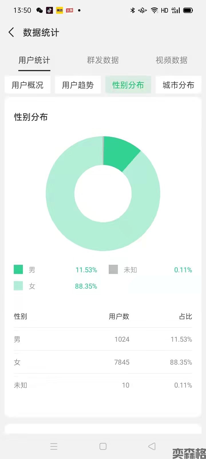 • 男女比例: 女粉多