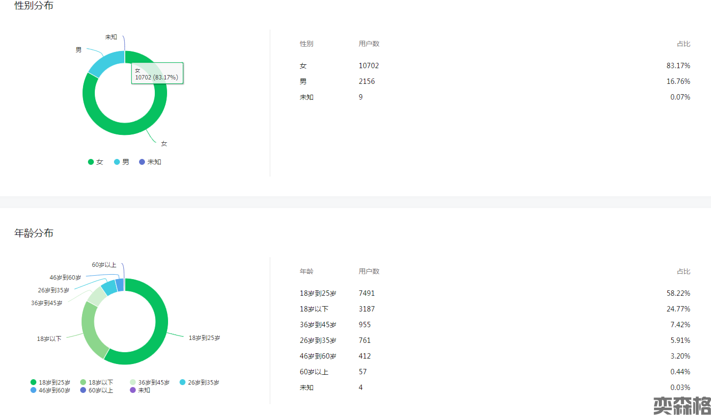 • 男女比例: 女粉多