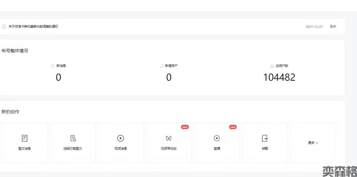 一、注册开通公众号注册公众号之前需要准备的东西:一个邮箱、一个手机号、个人身份证号或者营业执照、绑定身份证的微信1、注册公众号,其实比较简单,首先在网页上搜“微信公众平台”,找到微信公众号官方平台,点进去,会出现登录界面。再点击上方的立即注册。2、注册界面了,需要用邮箱申请,填写好邮箱之后,会有验证码,依次填写密码进入...